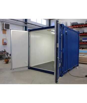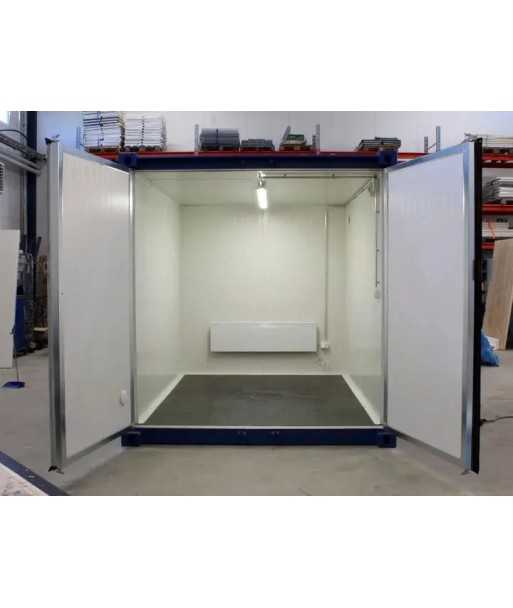 El contenedor aislado de 10′ es un contenedor de almacenamiento muy popular para su uso durante todo el año. El aislamiento mantiene la humedad fuera, y el radiador asegura que el espacio esté caliente todo el año.El contenedor tiene puertas dobles equipadas con un toldo, y 2 válvulas de ventilación como equipamiento estándar. El suministro eléctrico, la calefacción y las puertas de acceso se ofrecen como equipamiento adicional. El contenedor sólo es apto para almacenamiento y sólo está disponible nuevo.