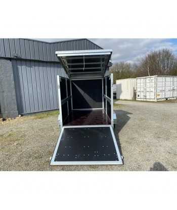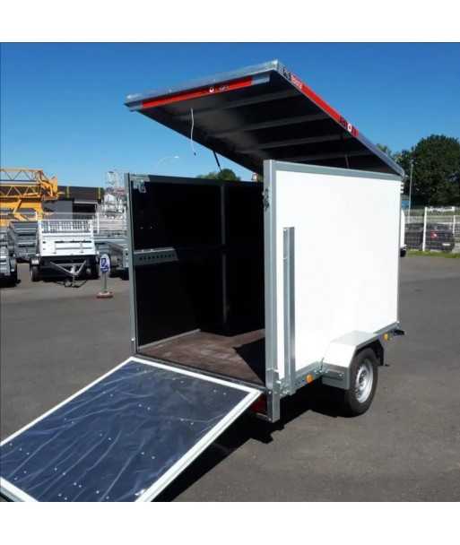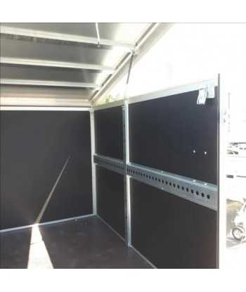Este remolque tipo furgón cuenta con un portón de carga con apertura asistida por amortiguadores de gas, facilitando así la carga y descarga de tus mercancías. Sus dimensiones útiles de 226 x 130 x 143 cm ofrecen un amplio espacio para transportar tus bienes de manera segura.